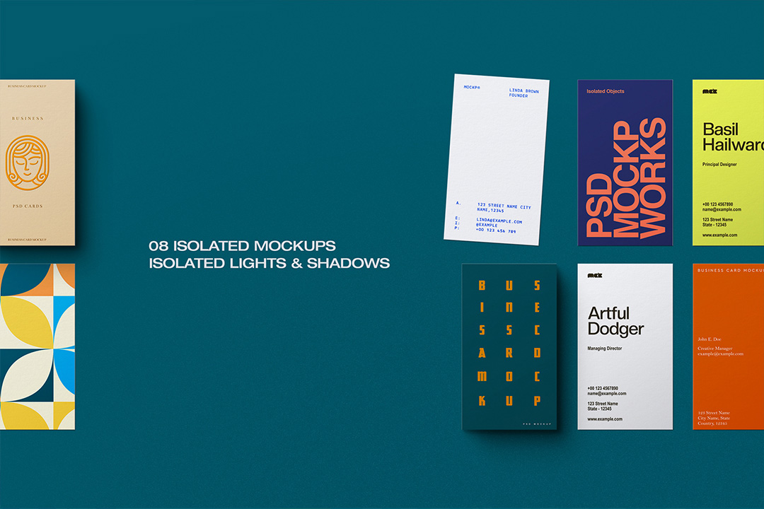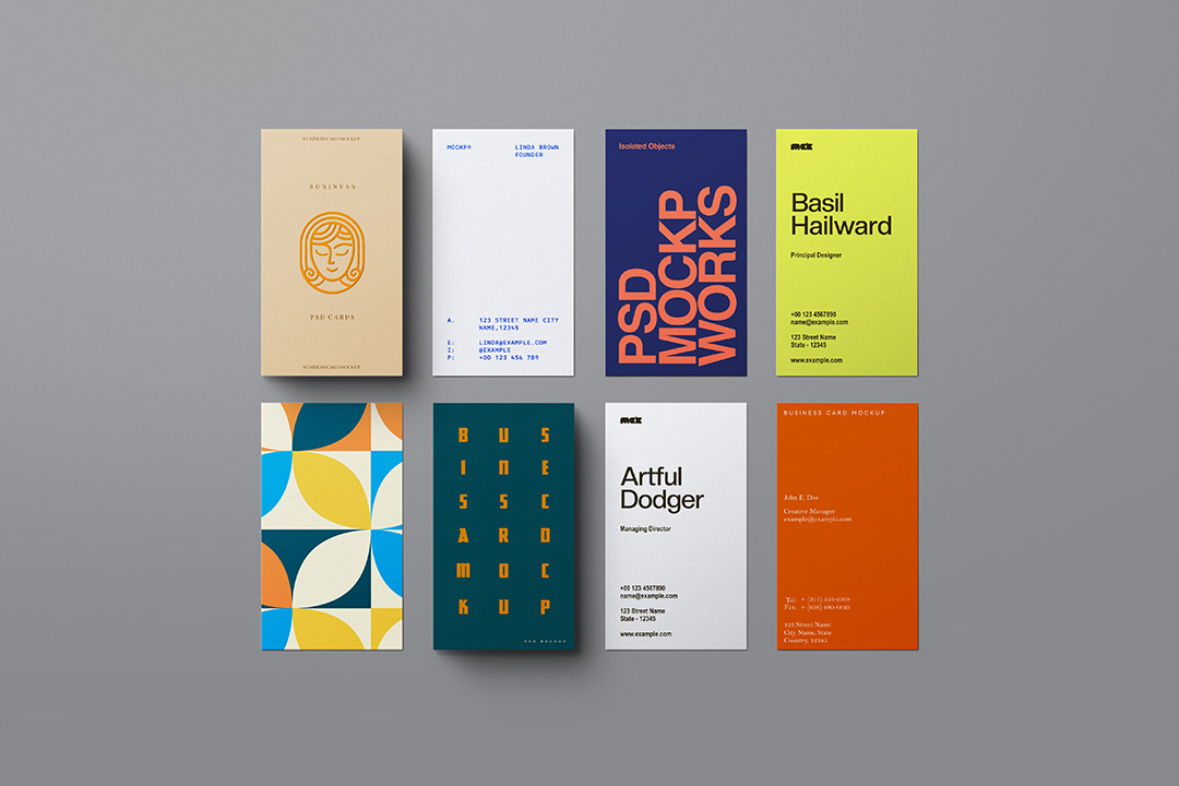 Present your branding designs with this Business Card Mockup Set – Vertical Layout (5000 × 3500 px). Includes 8 isolated mockups of 3.5 × 2 inch business cards presented in a vertical orientation. Each mockup features editable Photoshop Smart Objects, allowing quick artwork placement with realistic paper textures and shadow control. Independent light and shadow layers ensure natural depth and flexibility for different backgrounds. Ideal for stationery design, corporate identity, personal branding, and print showcases. Export sharp visuals for Behance, Dribbble, client presentations, and e-commerce listings. Delivered as a layered PSD file with an organized structure for efficient workflow.