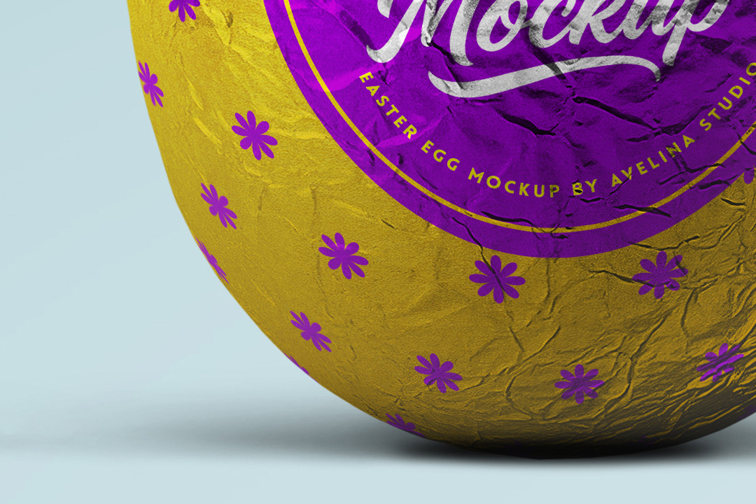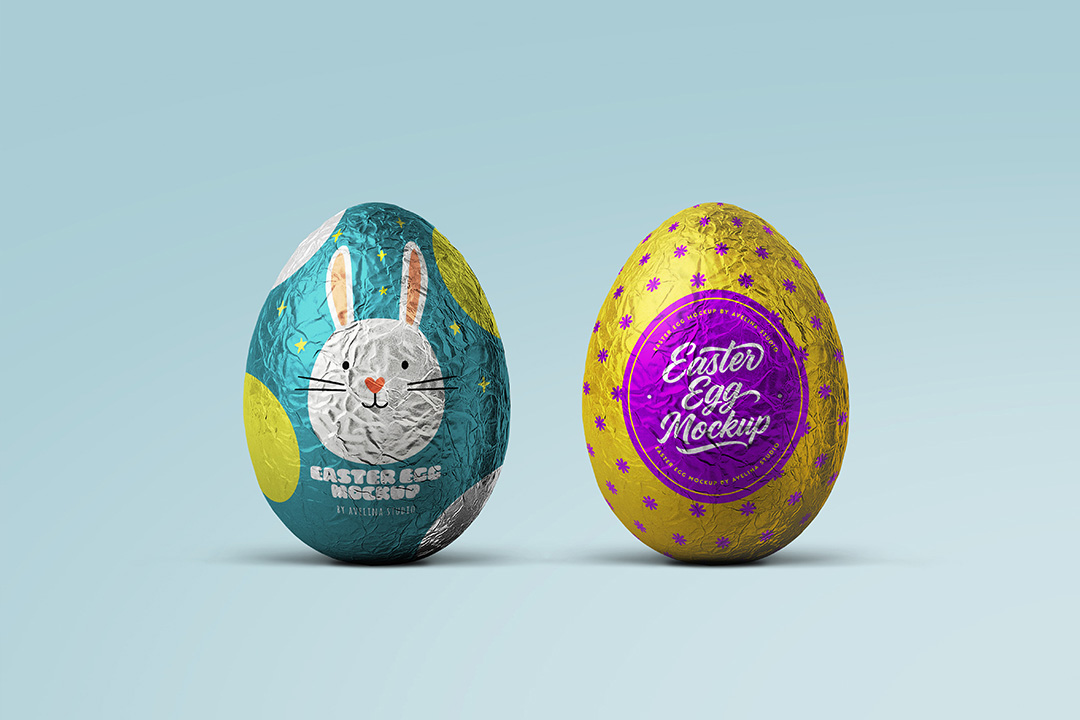 Present your seasonal packaging with this Easter Egg Mockup, Foil Wrapped (5000 × 3500 px). Includes 2 isolated foil wrapped chocolate eggs displayed side by side in a studio setup. Each egg features realistic crumpled foil texture with fully editable artwork via Photoshop Smart Objects. Shadows and lighting are layered independently for precise positioning and depth control. Ideal for chocolate brands, confectionery packaging and limited edition Easter campaigns. Insert your design in seconds and generate high-resolution visuals with strong material realism. Export ready assets for Behance, Dribbble, client presentations, e-commerce listings and print campaigns.