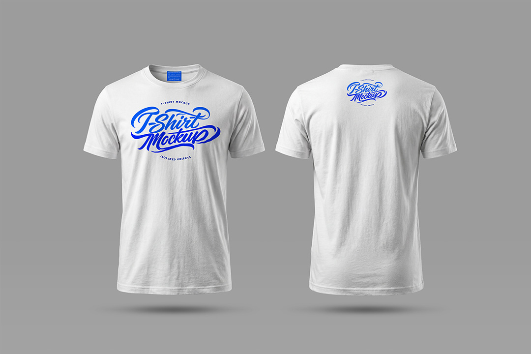 T-Shirt Mockup – Front & Back View (2 Isolated Shirts)