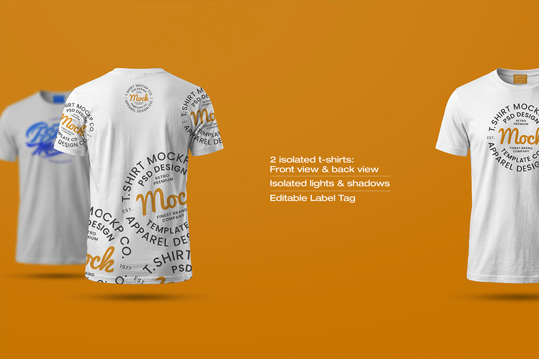 Showcase apparel designs with this high-resolution T-Shirt Mockup, captured at 6000 × 4000 px for professional-quality output. Includes 2 isolated t-shirts displaying front and back views for complete garment presentation. Fabric folds, seams, and collar details are realistically rendered for accurate print previews. The label tag is fully editable, allowing customization for branding or sizing. Independent light and shadow layers provide precise control over depth and realism. Designed for clothing brands, print-on-demand workflows, and apparel marketing. Ideal for Behance, Dribbble, client presentations, e-commerce listings, and print campaigns.
